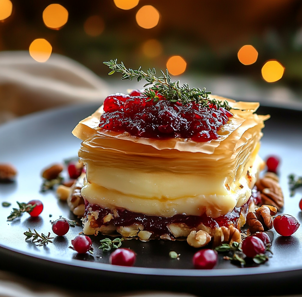 These Festive Brie Phyllo Layers are the ultimate crowd-pleaser and a fantastic addition to your holiday table.